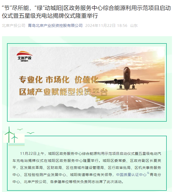 中電綠網(wǎng)作為參建方出席城陽區(qū)政務(wù)服務(wù)中心綜合能源利用示范項目啟動儀式